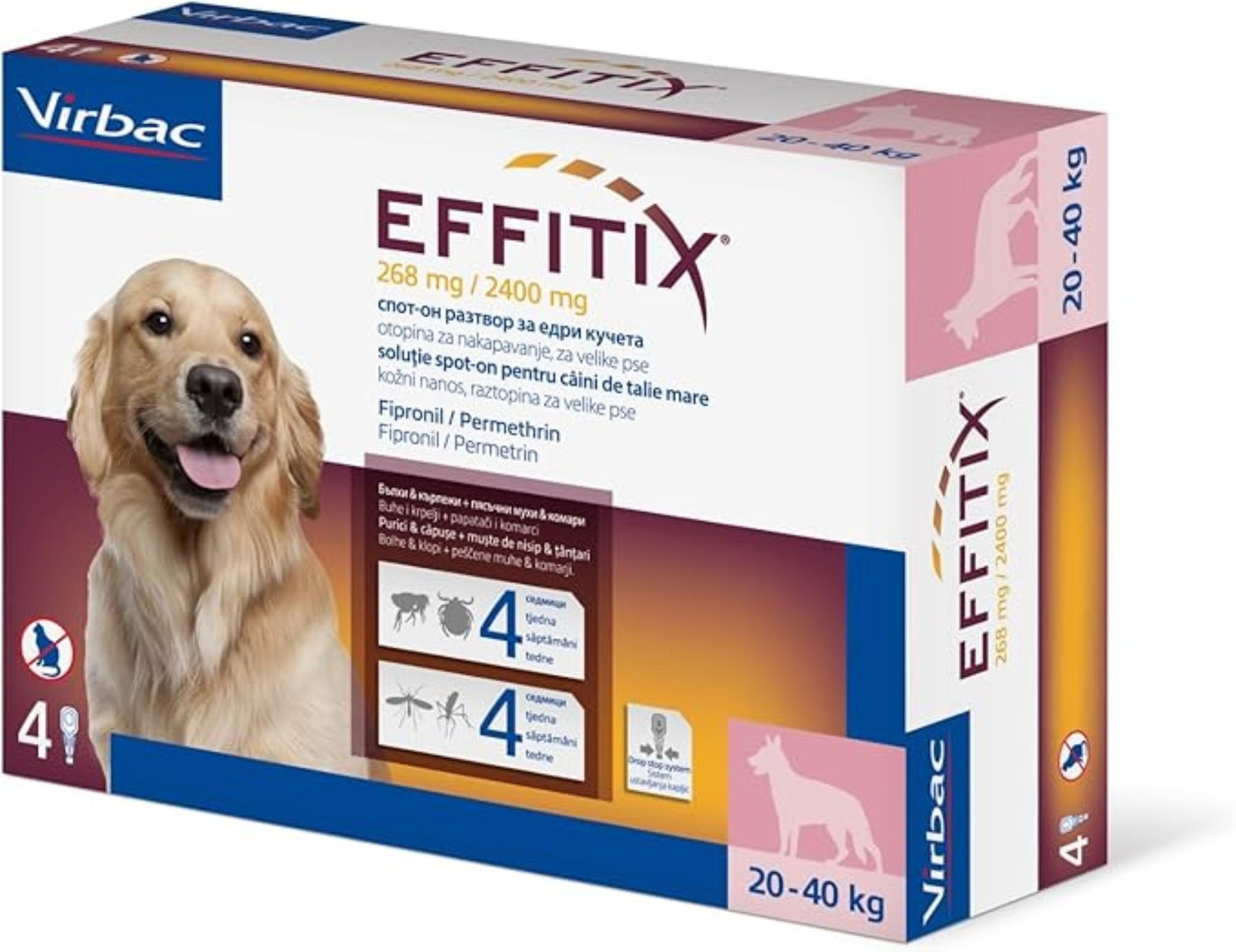 VIRBAC | Effitix Spot On solution For Medium Dog To control infestations of ticks, fleas, mosquitoes and sandflies (20-40 kg) | 1 Doses