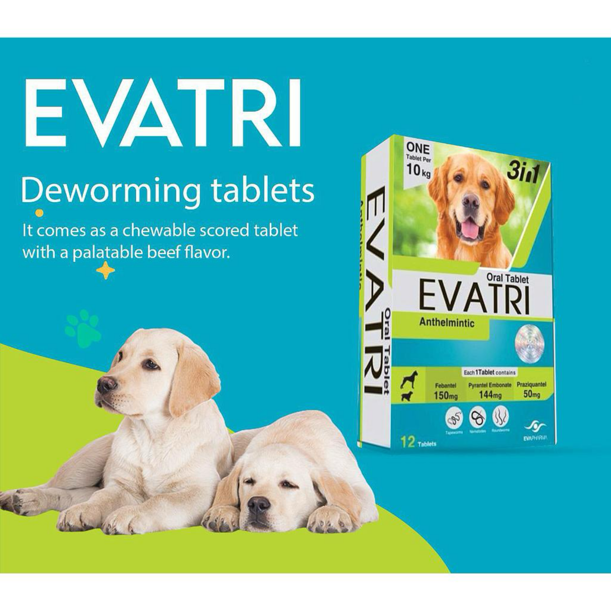 Evatri Dogs Deworming Tablet is a broad-spectrum worming tablet that is effective against various types of worms including roundworms, hookworms, whipworms, and tapeworms. It is safe for use in dogs and puppies over the age of 4 weeks and can be given monthly as a preventative measure or as needed if your pet becomes infected.